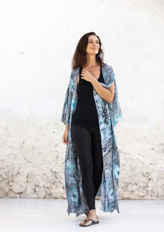 Der glamouröse Lola Kaftan verleiht Ihnen eine ganz besondere Ausstrahlung, wenn Sie in diesem Sommer am Pool einer mediterranen Villa entspannen oder sich für eine morgendliche Yogastunde auf Ibiza zurechtmachen. Der Lola Kaftan ist bodenlang und hat kurze Flügelärmel. Er kann als Kaftan um die Taille gebunden oder lässig als Duster getragen werden.