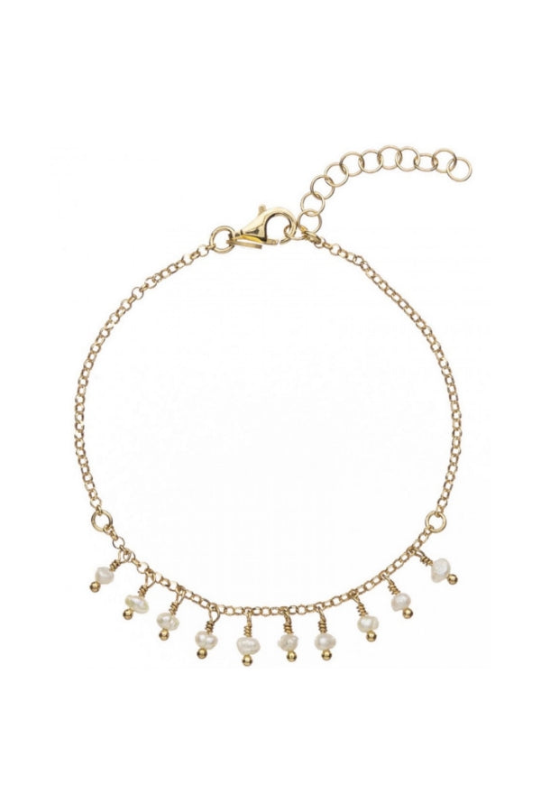 A 925 Silver bracelet in 18k galvanic Gold or galvanic rosé gold, adorned with 10 pearls.