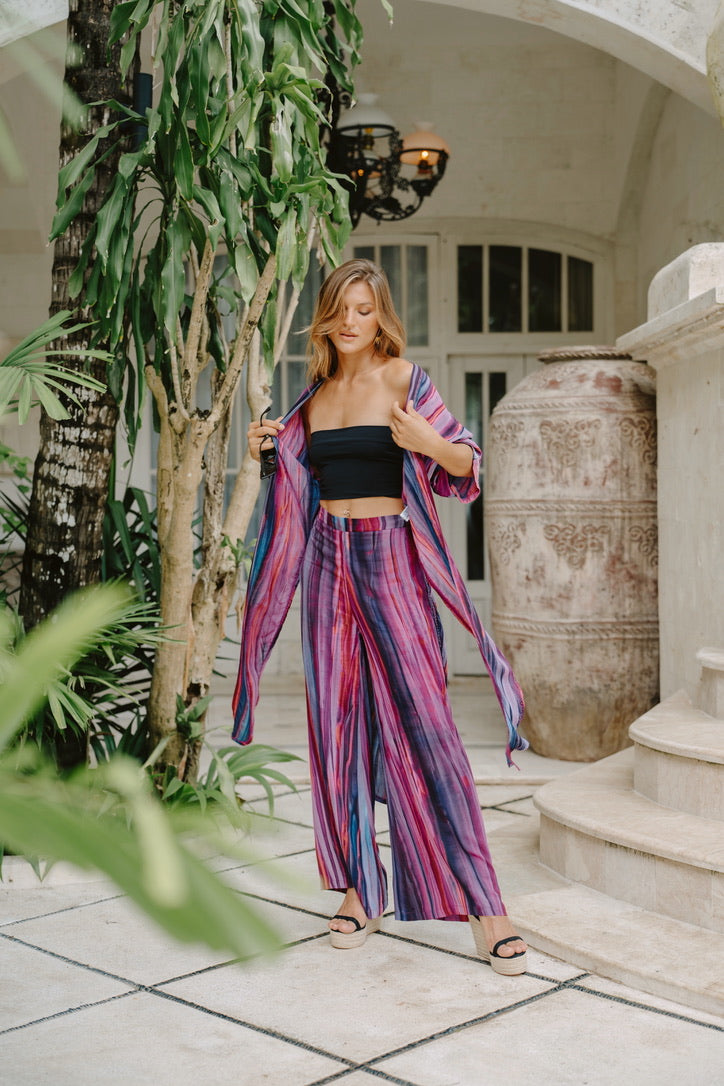 These Amy Pants in Eclipse Fade Tie Dye bring relaxed Ibiza boho style to every moment. Lightweight rayon voile offers breezy comfort, while the soft pastel tie-dye finish adds a touch of playful charm. Perfect with matching tops or a simple cami for that effortless Hippy Chick Ibiza look.