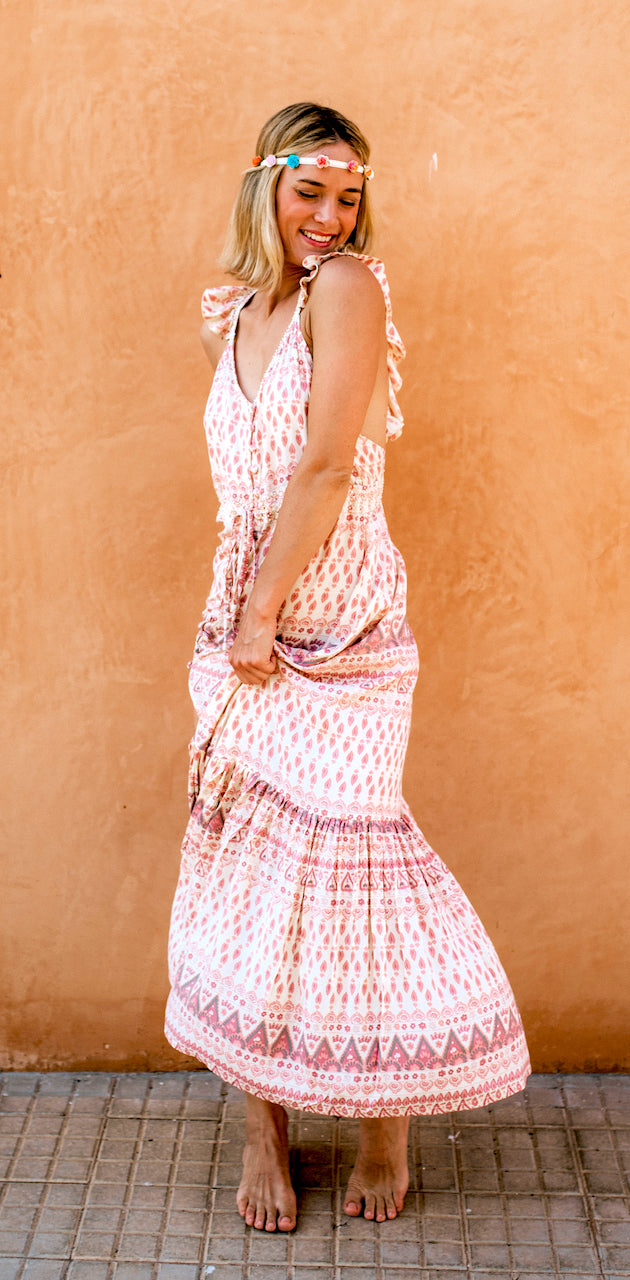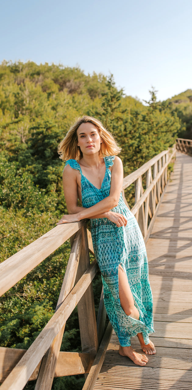 El vestido Noemi te hace sexy de cualquier forma. Juntando su cintura alta, dobladillo oscilante con volantes y sus atrevidos detalles en la espalda te harán repetir este vestido durante todo el verano.