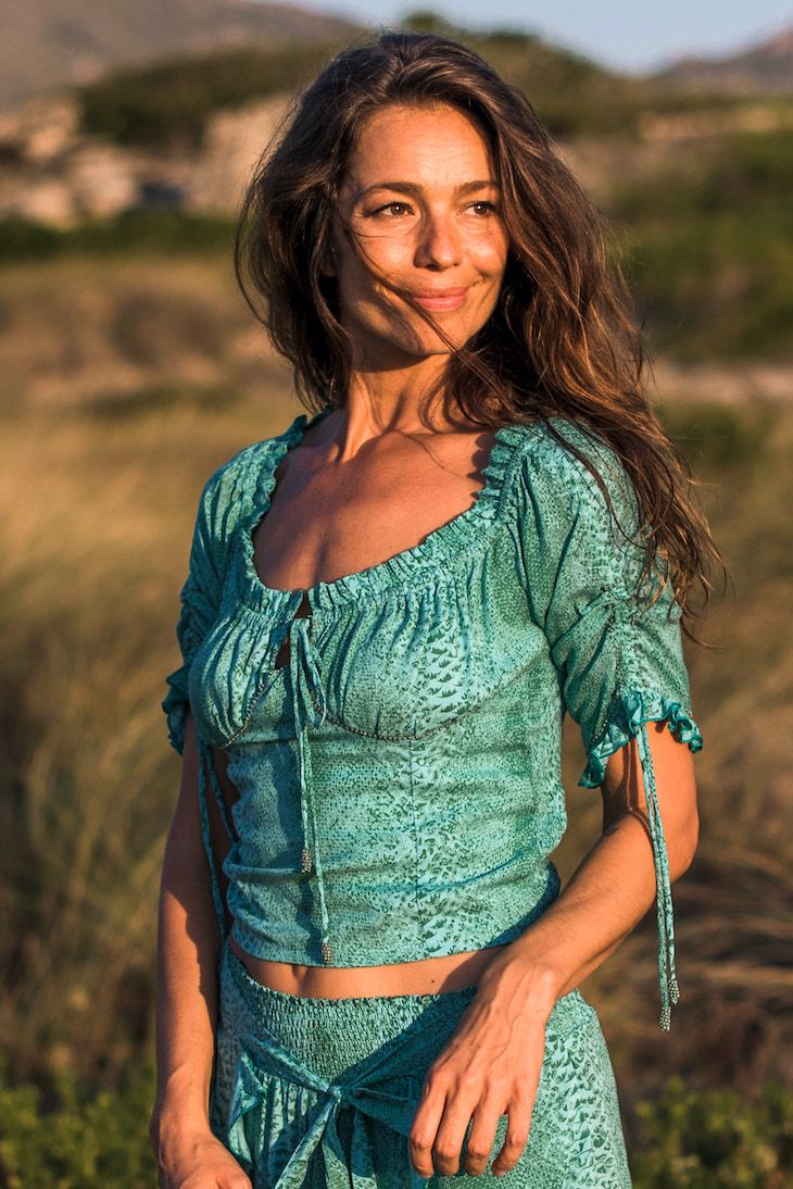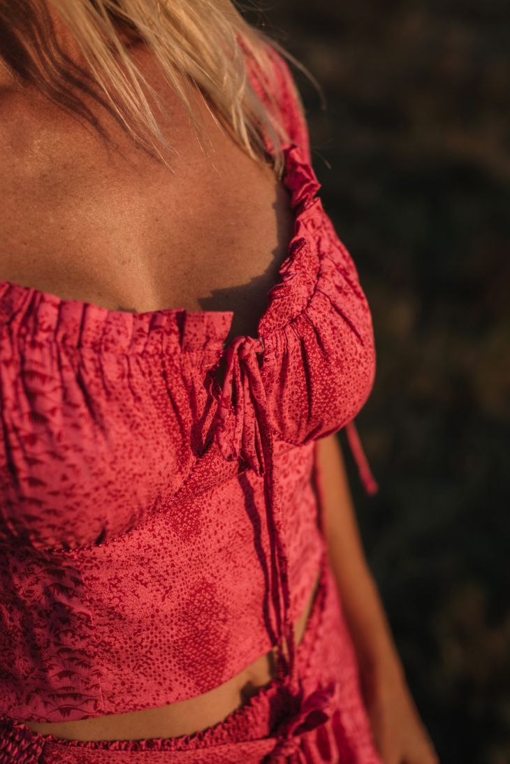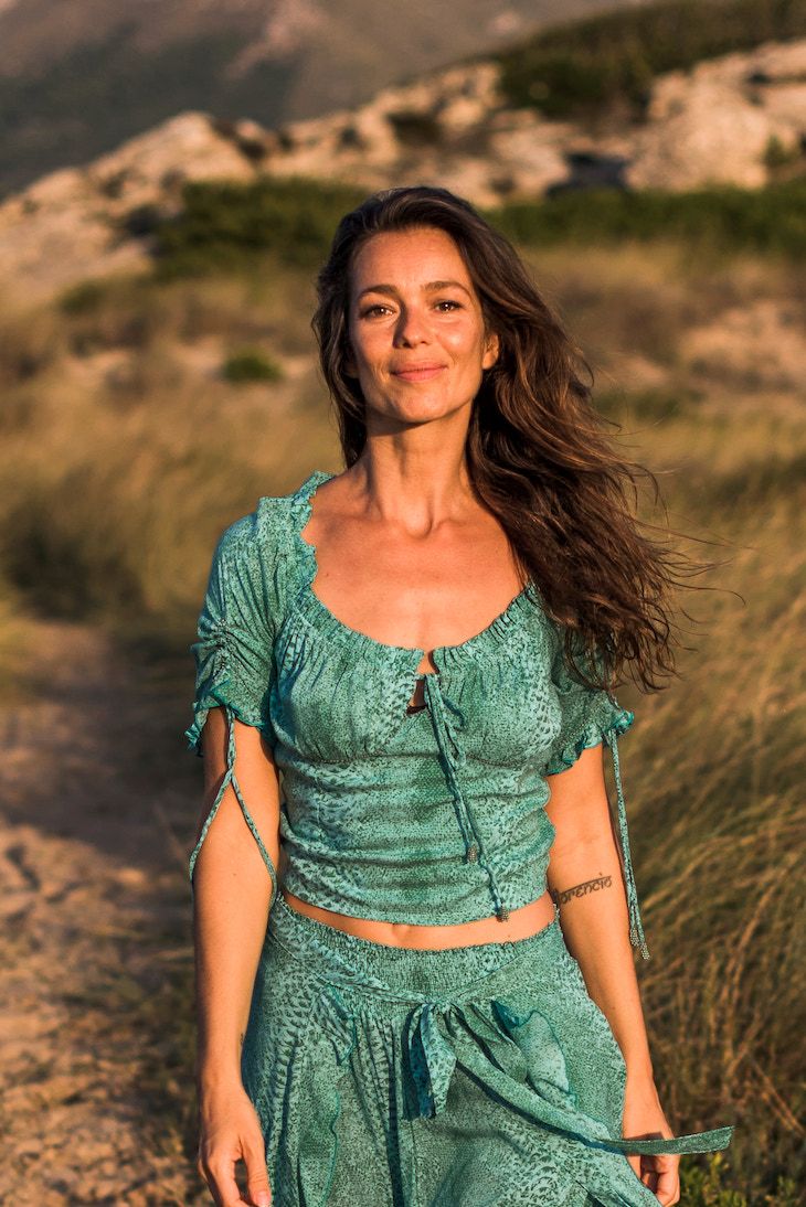 Elija entre dos colores, verde o rojo, ambos con detalles adornados a mano. Combínalo con nuestros pantalones Melody para lograr tu verdadero estilo Hippy Chick Ibiza .