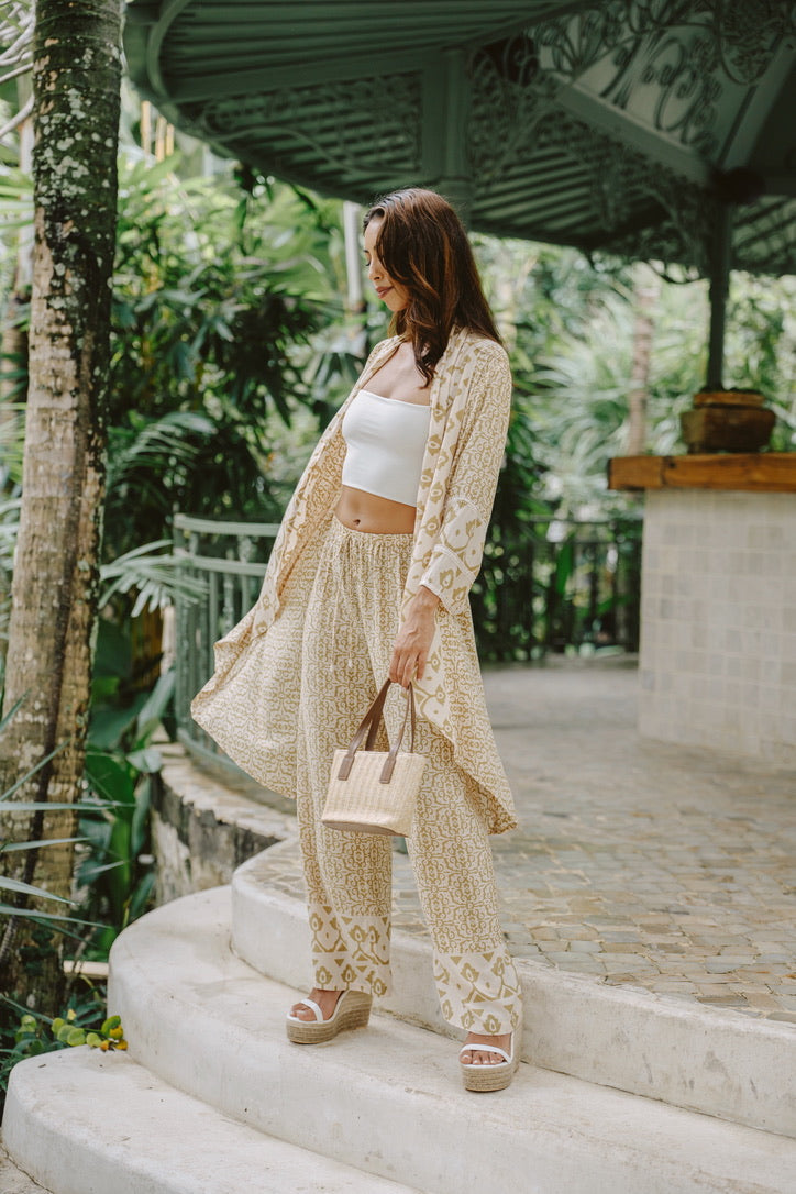 The Maya Long Kimono in Nomad Border Print adds a fresh, bohemian glow to your wardrobe. Crafted from soft rayon voile with a breezy drape, it’s perfect over dresses or swimwear for an effortless Ibiza Style look.
