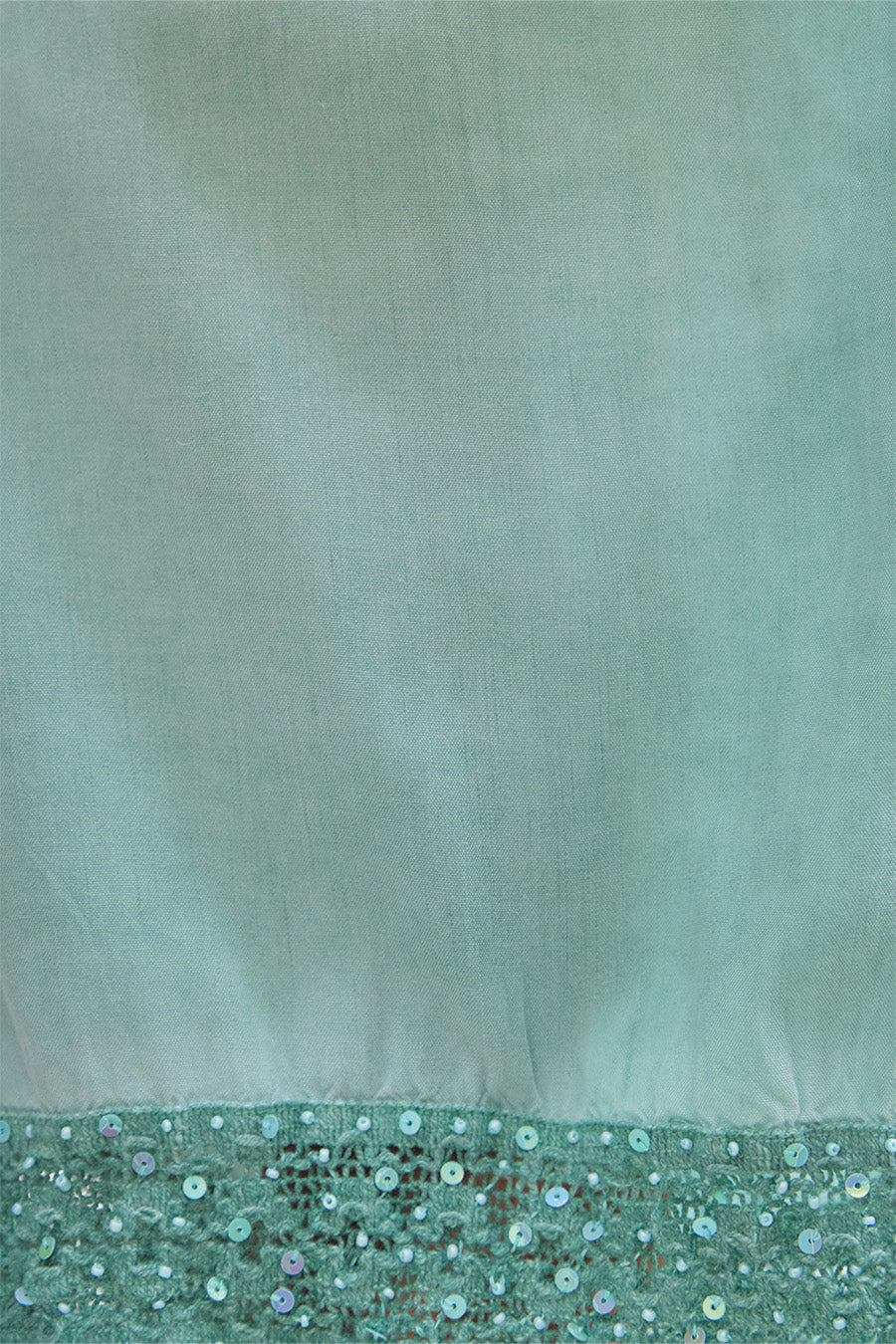 The Verdant Kimono is an effortless statement piece. With lavish lace panels on the back, sleeves and edges, it flows beautifully whether worn open or cinched at the waist.