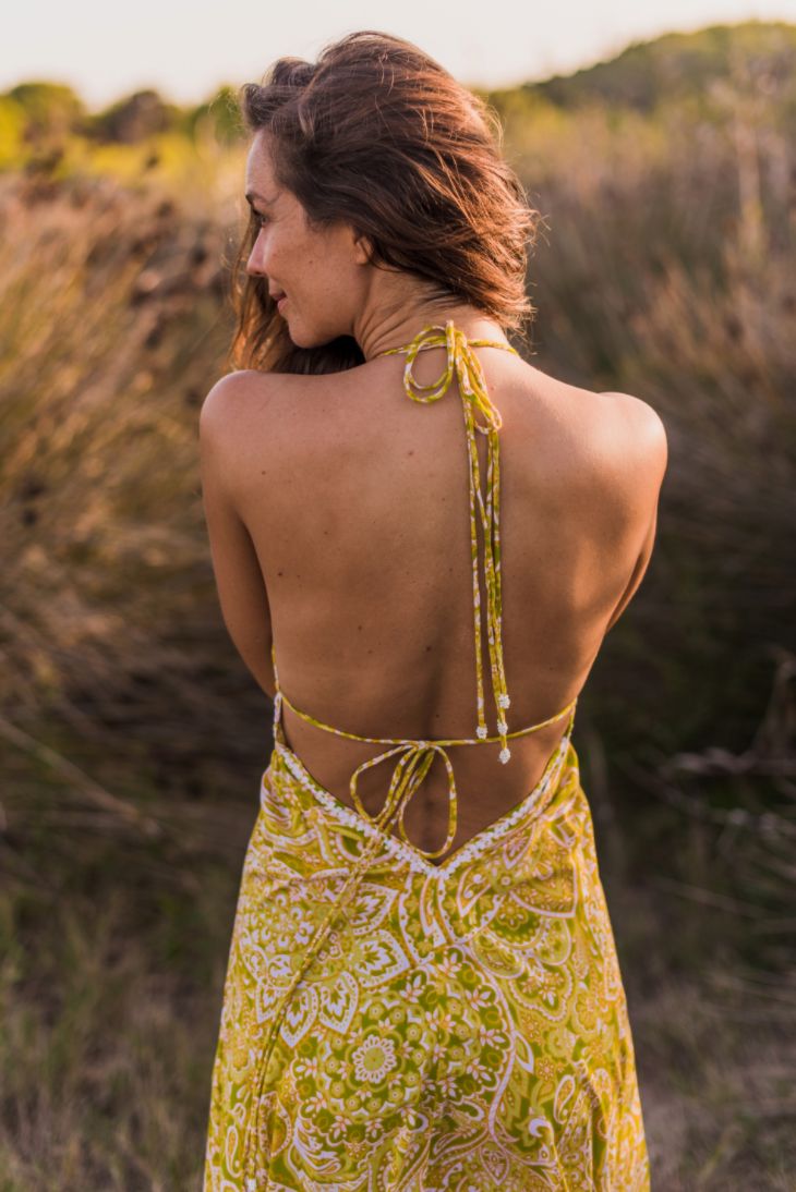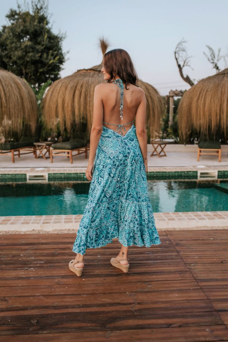 The beautiful hand-dyed Abaresque print, coupled with the hand-embellished beading, offers stunning definition to our Love Maxi Dress. Available in two gorgeous tones of green or blue, made from the softest lightweight Rayon, that caresses your body as you move. For the ultimate Hippy Chick Ibiza style, pair with a headscarf and chunky bangles or sweep hair up and wear with statement earrings for evening dinner elegance.