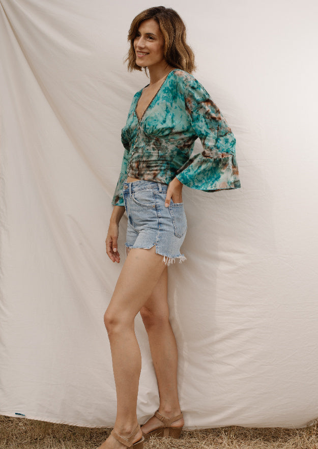 Designed to elevate your casual outfits with its charm. The Geode Tie Dye pattern adds a touch of artistic flair, showcasing a mesmerizing blend of colors and patterns that make each top unique and captivating. Embrace the beauty of nature with this tie-dye effect, reminiscent of geode formations.