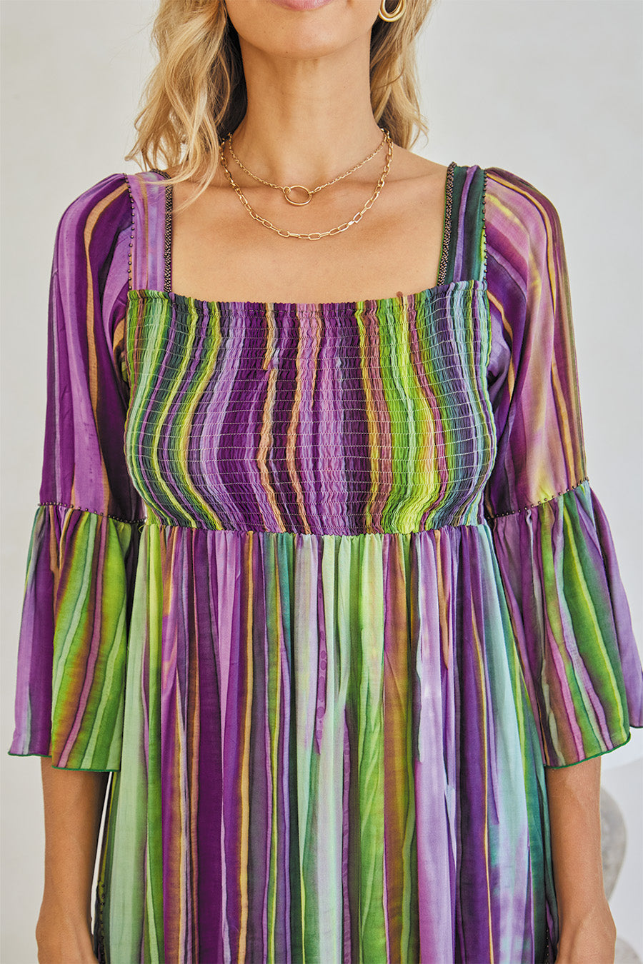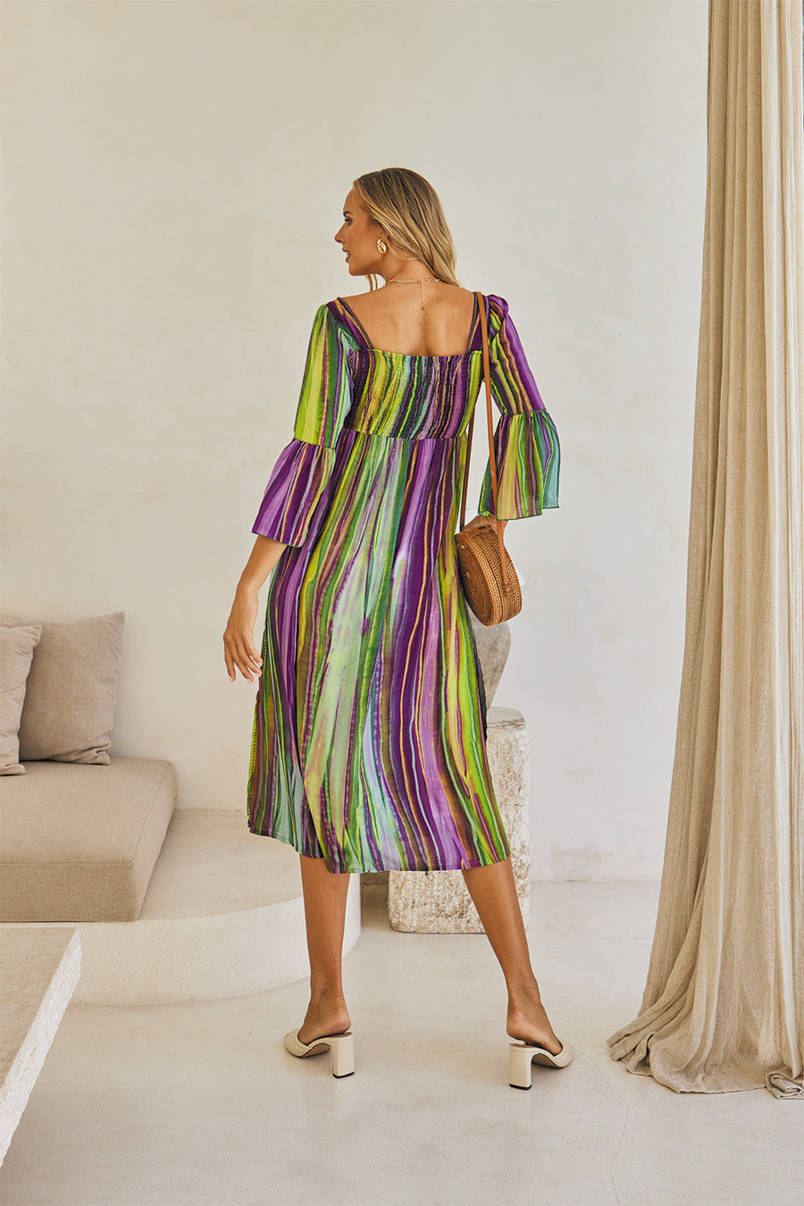 The Nova Midi Dress is a celebration of feminine charm and boho spirit. With a smocked square neckline, billowy sleeves and a flowy midi length, it’s perfect for sunlit days or easy nights.