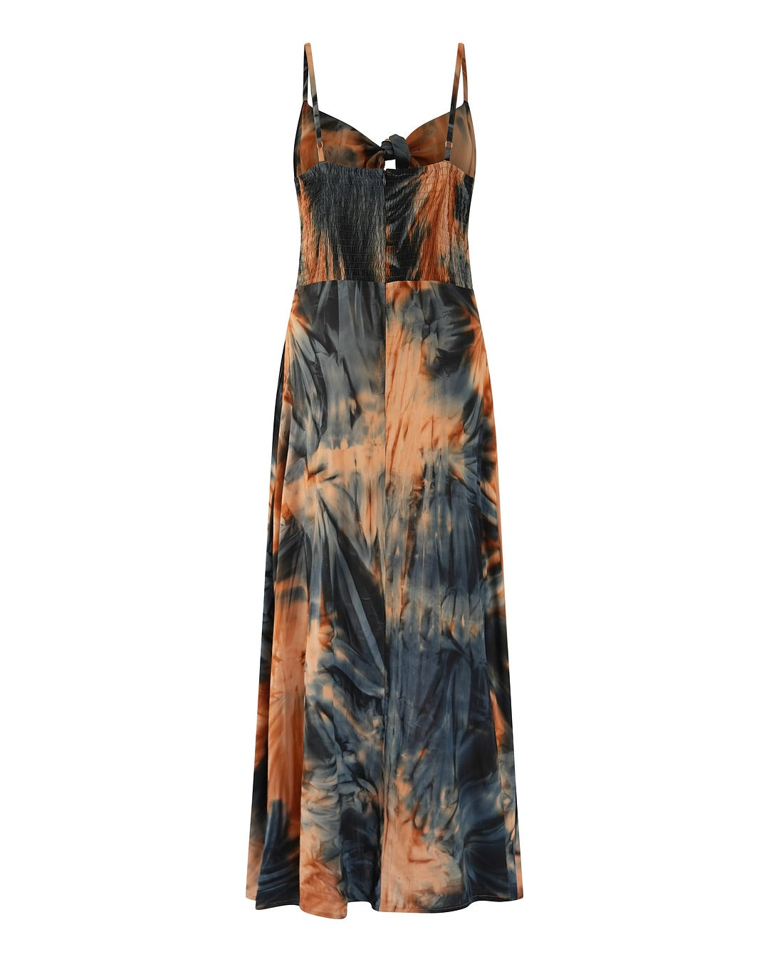 The Rae Long Dress in Ocean Fade Black blends natural tones with relaxed Ibiza luxury. Its black and brown tie-dye pattern flows across soft rayon voile, creating a timeless boho silhouette inspired by the island’s earthy beauty.