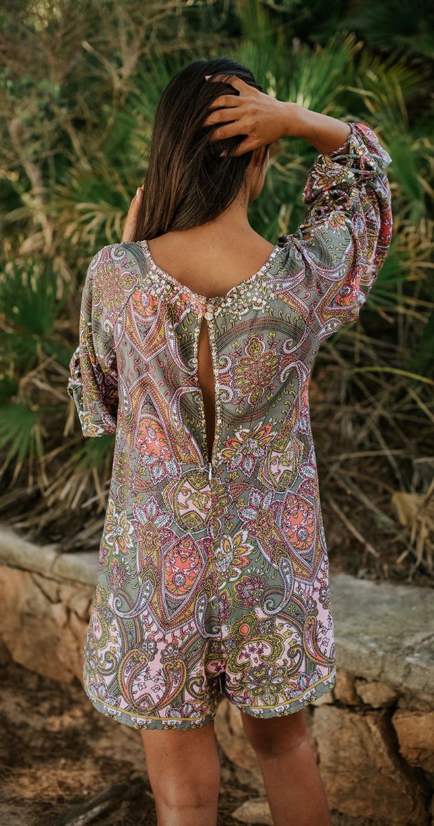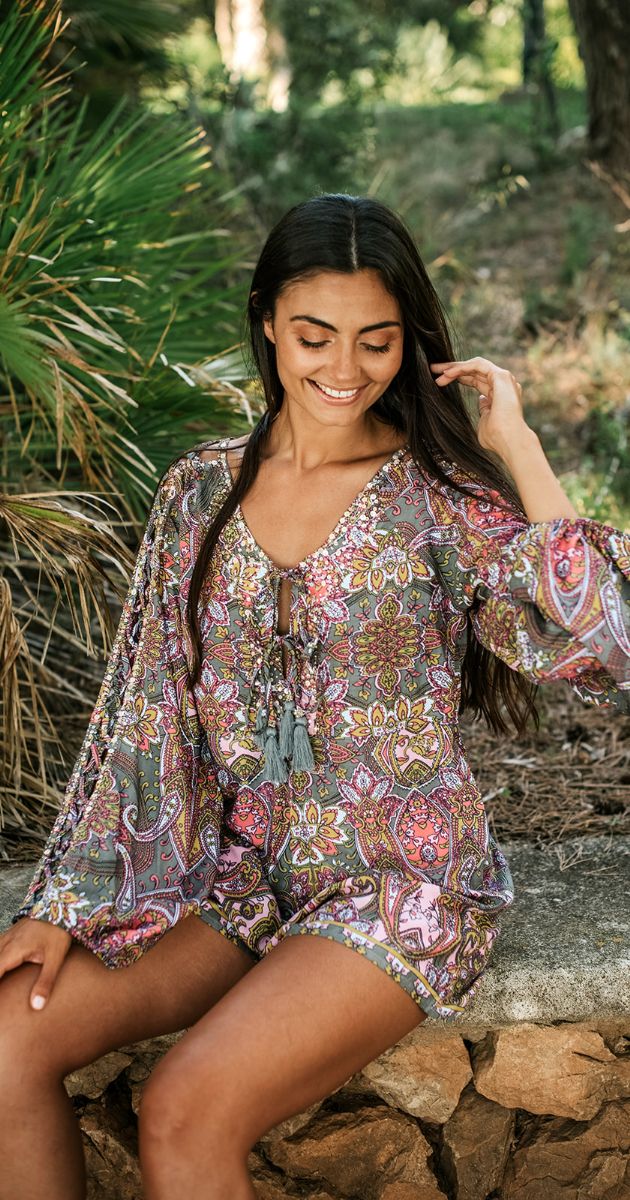 Go out in style in our Caly short Paisley jumpsuit. This playsuit oozes elegance and class. Made from the softest rayon fabric, in a beautiful ethnic print that comes in 2 different colour tones.